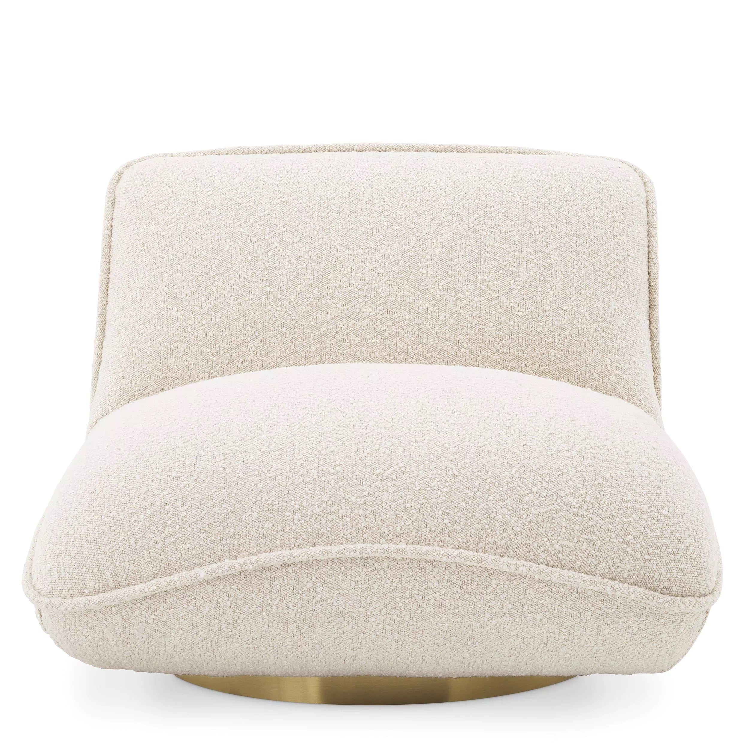 Fotel obrotowy Eichholtz Relax posiada tapicerkę wykończoną lamówką, podstawa wykonana jest ze szczotkowanego mosiądzu.