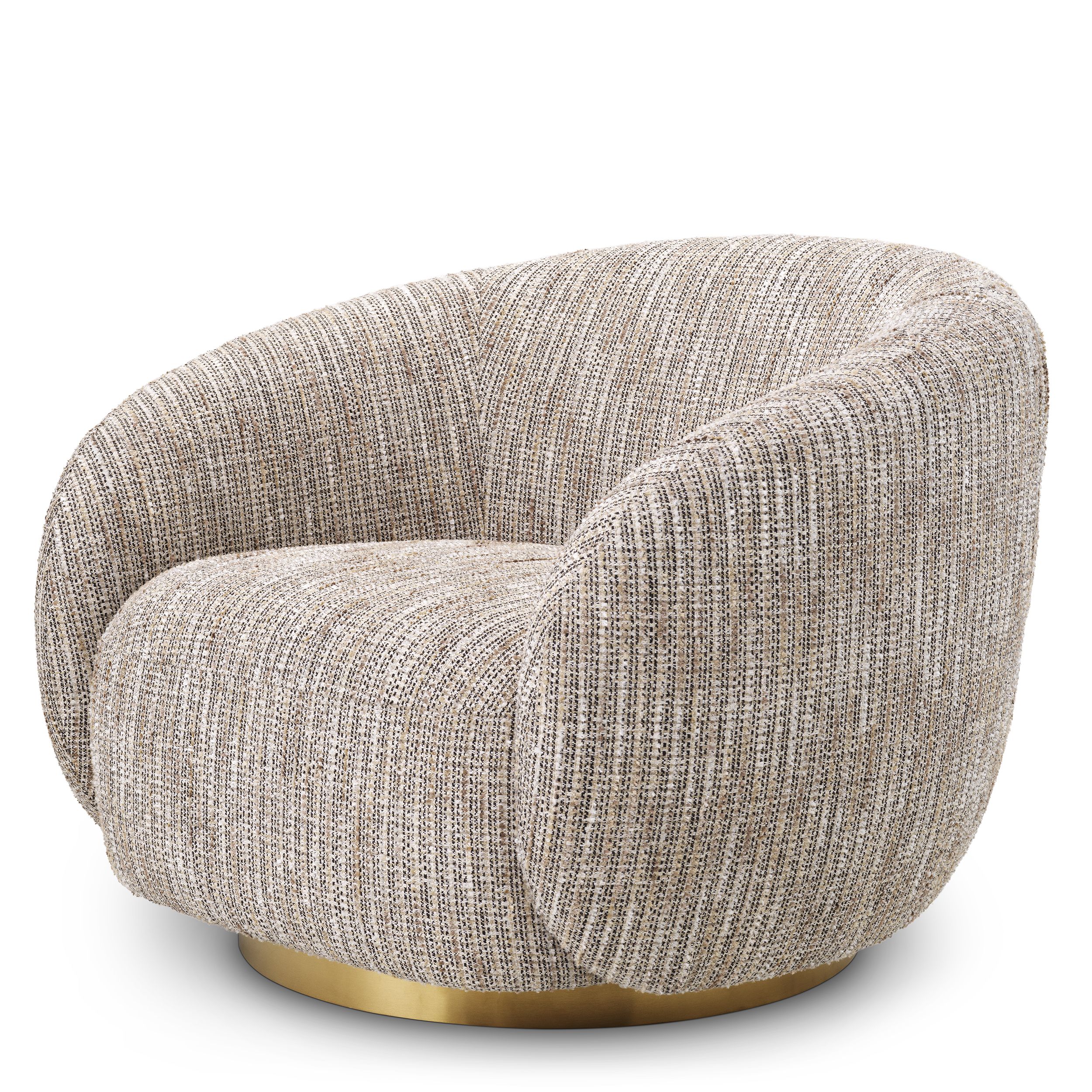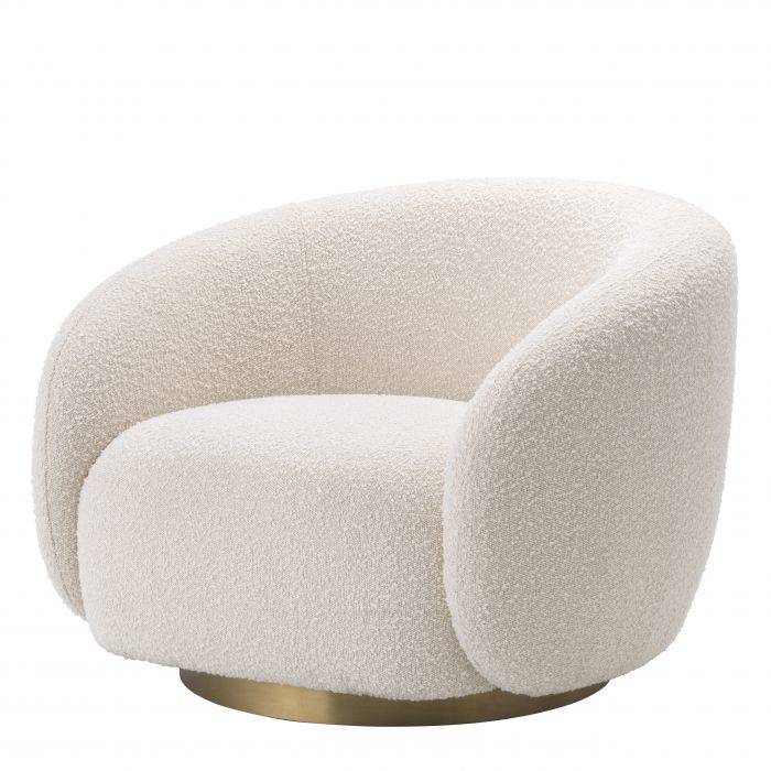 Obracaj się i zrelaksuj do woli w fotelu Eichholtz Brice, idealnym dodatku do Twojej codziennej przestrzeni życiowej. Przytulny i nowoczesny, elegancko zakrzywiony fotel Brice posiada stylową piaskową tapicerkę i obrotową podstawę wykończoną w szczotkowanym mosiądzu.