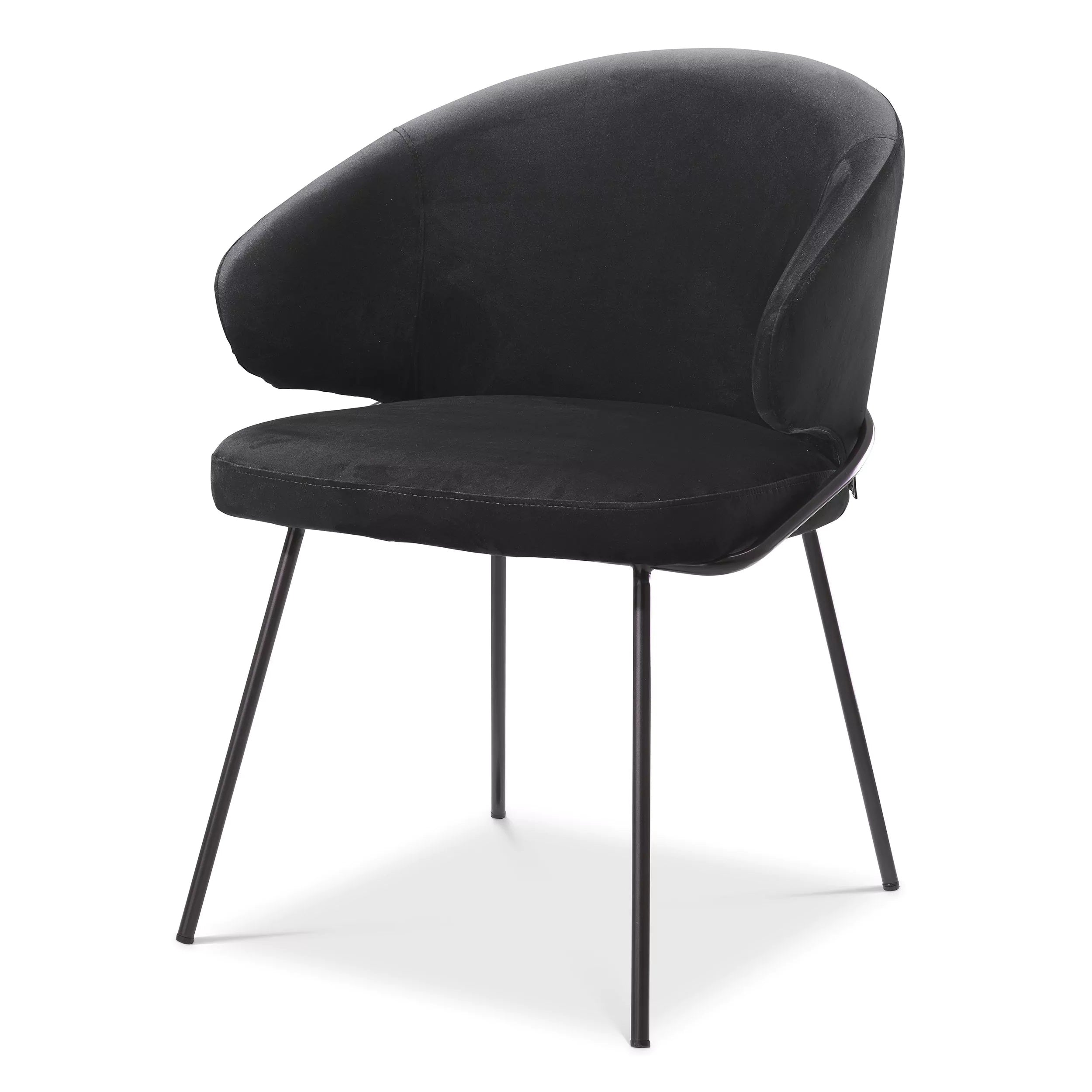 Krzesło Eichholtz Kinley posiada aksamitną tapicerkę oraz stalowe nogi.
