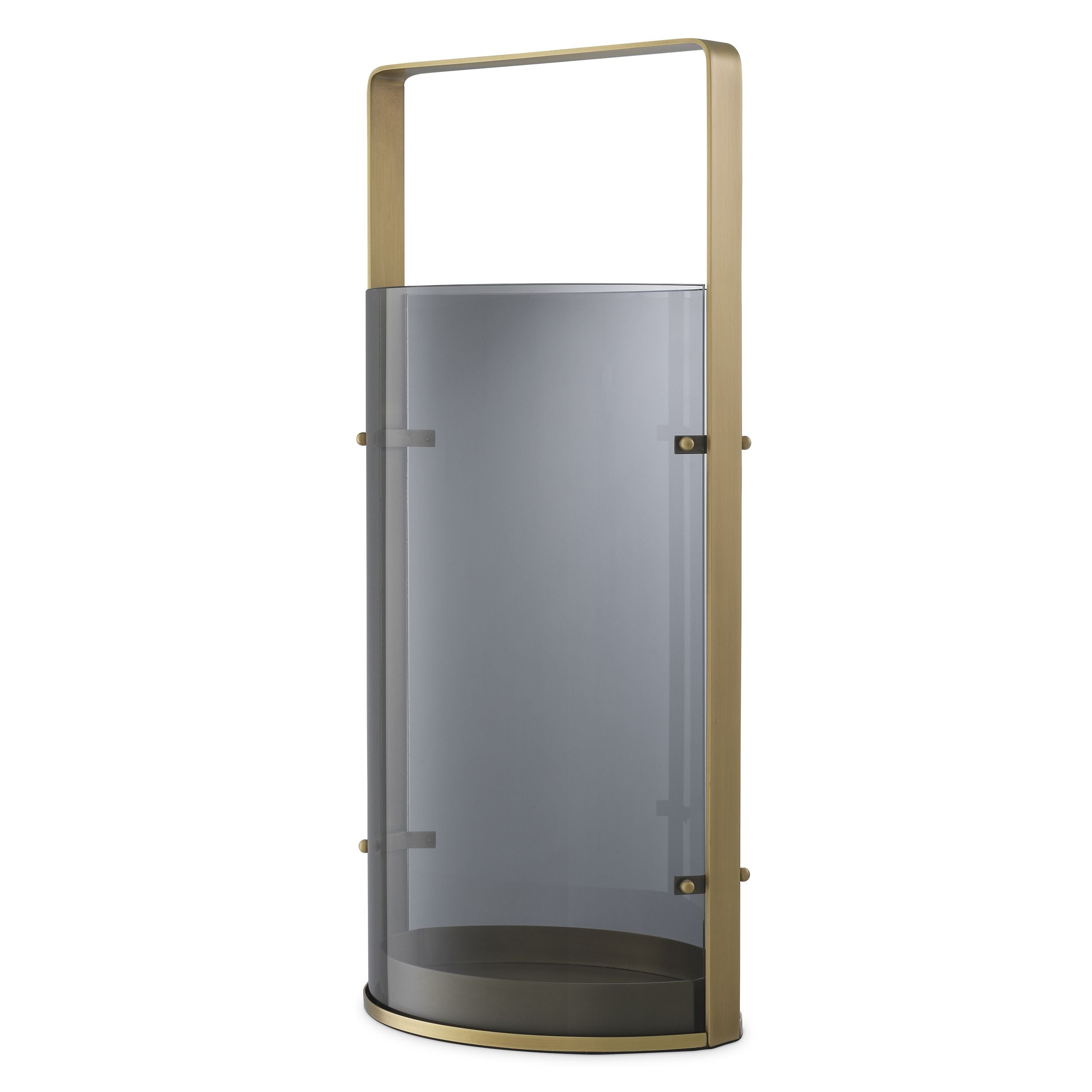Stwórz ciepłą i przyjazną atmosferę dzięki Hurricane Reid L, które można ustawiać pojedynczo lub w grupach. Wystarczy dodać świecę filarową i pozwolić, aby światło świec zmieniło Twój dom w przytulny dom. Wyposażony w ramę z antycznego mosiądzu i klosz z dymnego szkła, stanowi również element dekoracyjny w ciągu dnia.