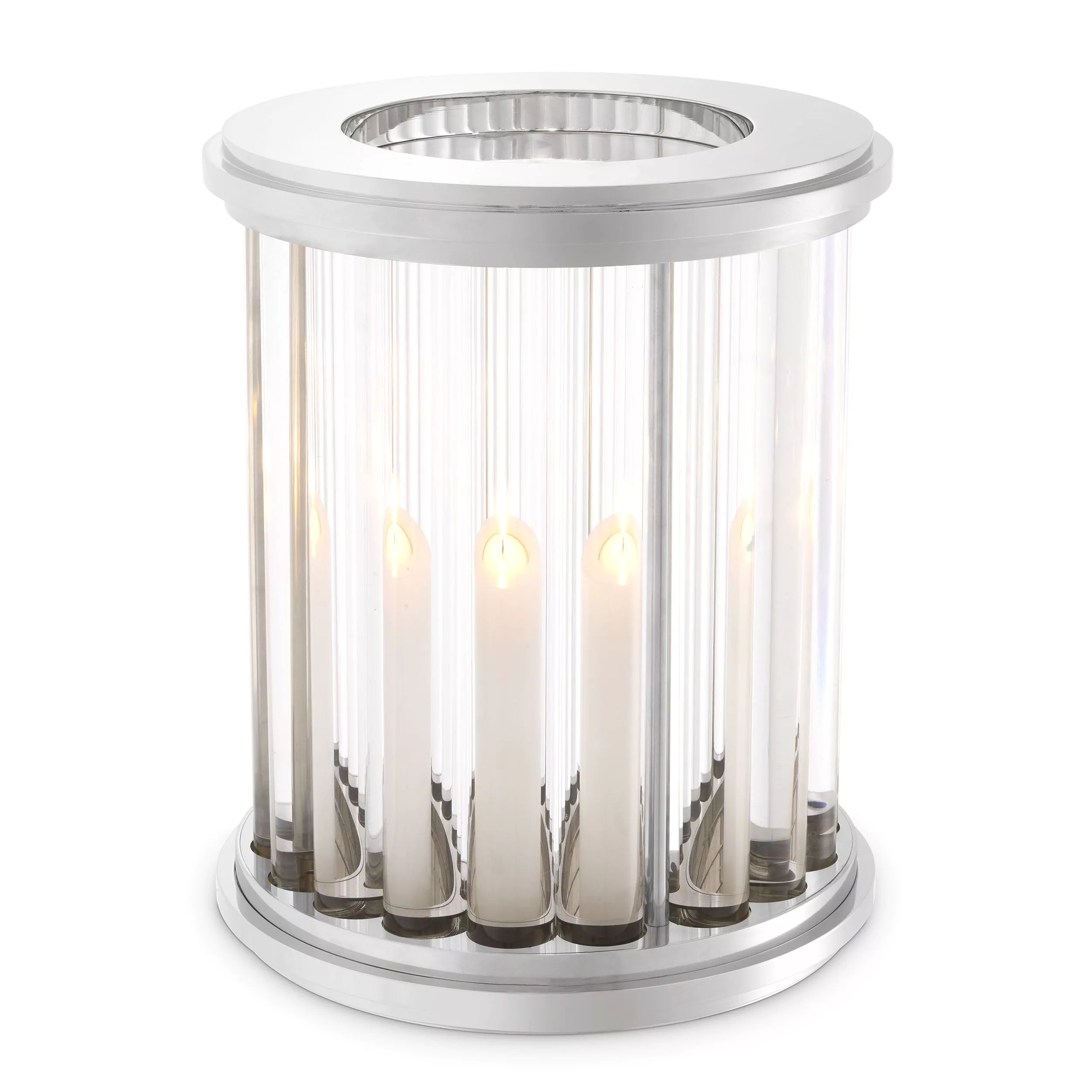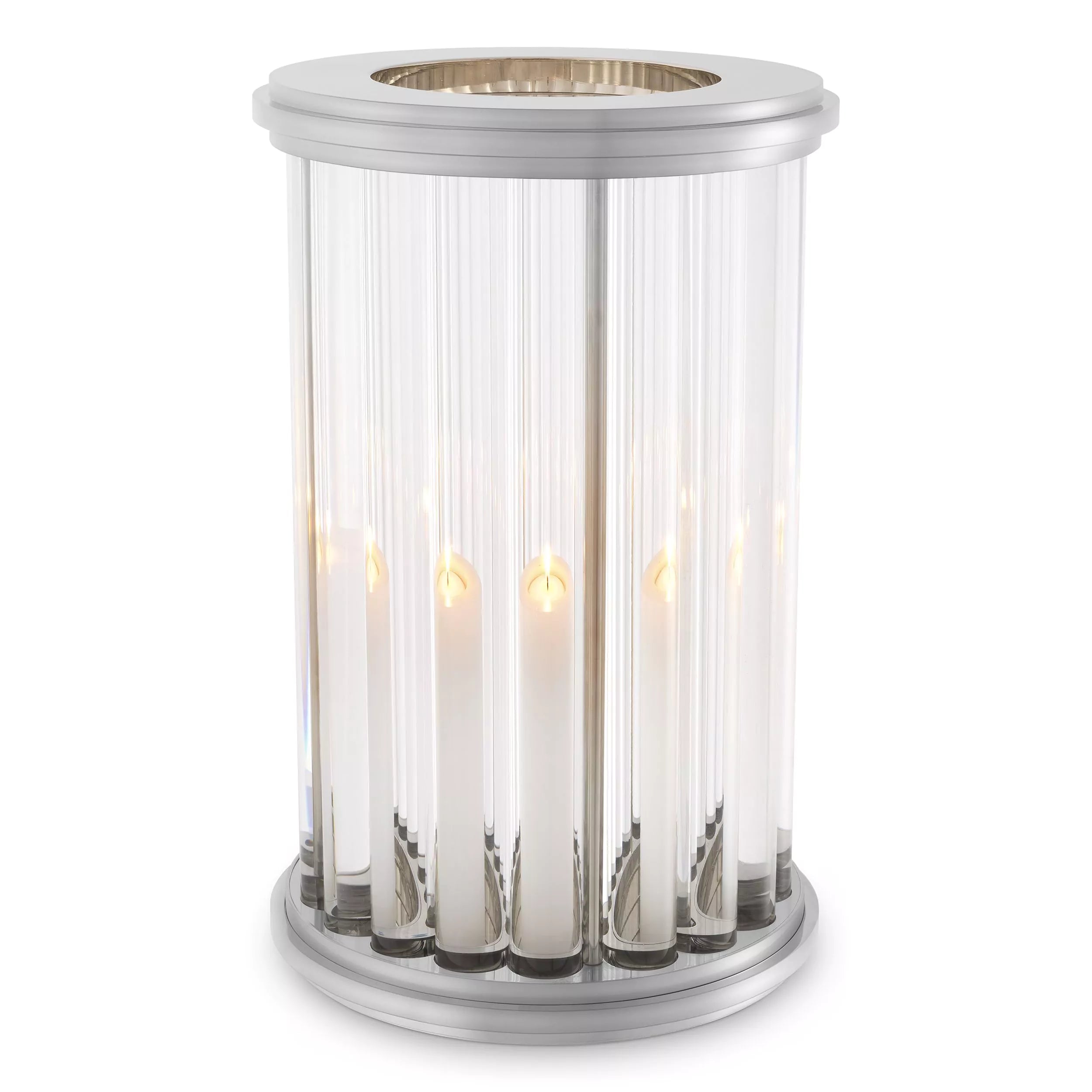 Duży, inspirowany stylem Art Deco huragan Ruhlmann Hurricane, który przyciąga wzrok również w ciągu dnia. Łącząc klasyczny design ze współczesną estetyką, ten huragan emanuje ponadczasowym urokiem. Posiada niklowe wykończenie i solidne przezroczyste szklane pręty zapewniające miękki i ciepły blask. Połącz z małym huraganem Ruhlmann, aby uzyskać dodatkową atmosferę.