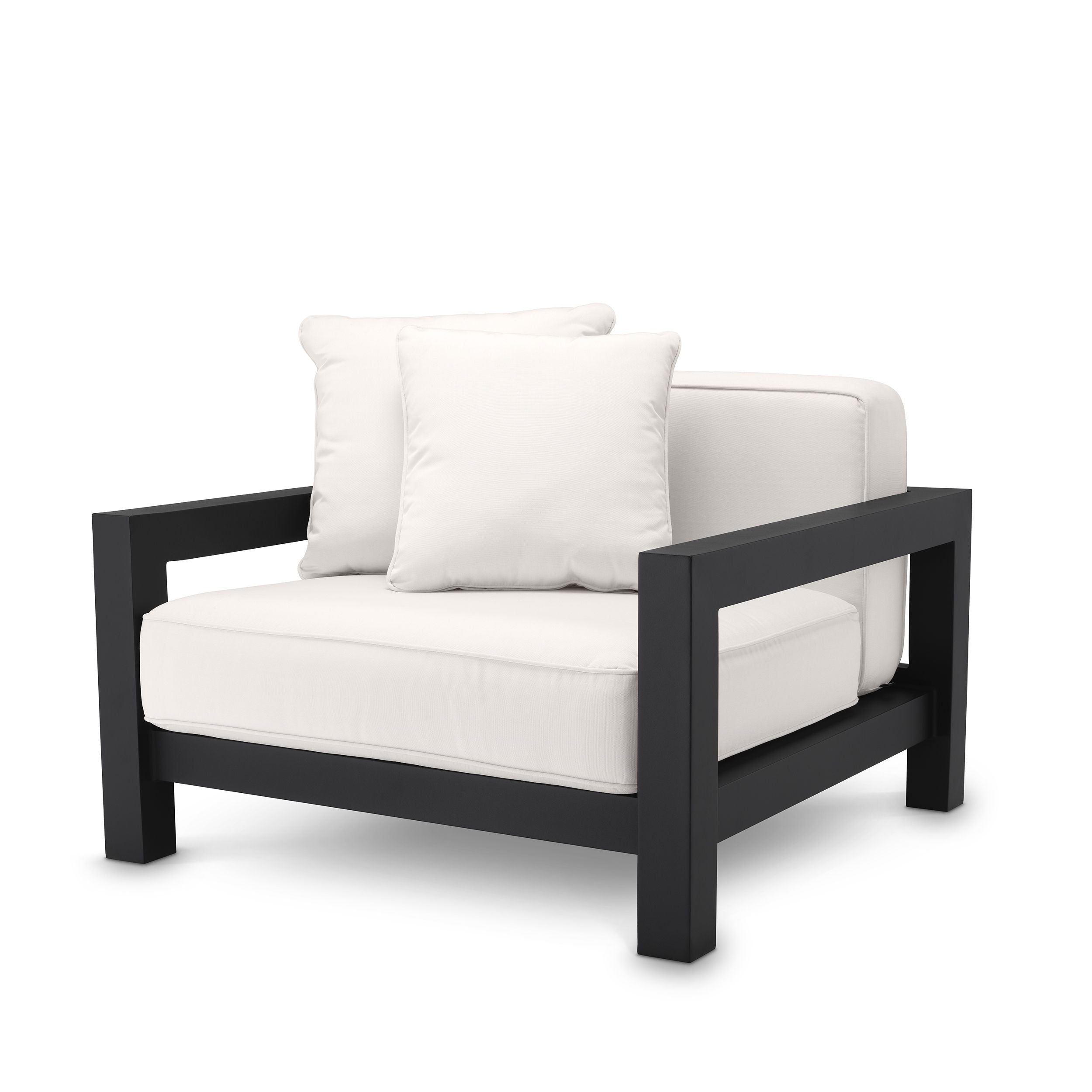 Wyróżniające się eleganckim designem z prostymi liniami krzesło Cap-Antibes dodaje współczesnego stylu do wystroju tarasu. Ten luksusowy fotel został wykonany z wytrzymałego aluminium. Siedzisko i poduchy oparcia są tapicerowane płótnem Sunbrella odpornym na promienie słońca.
