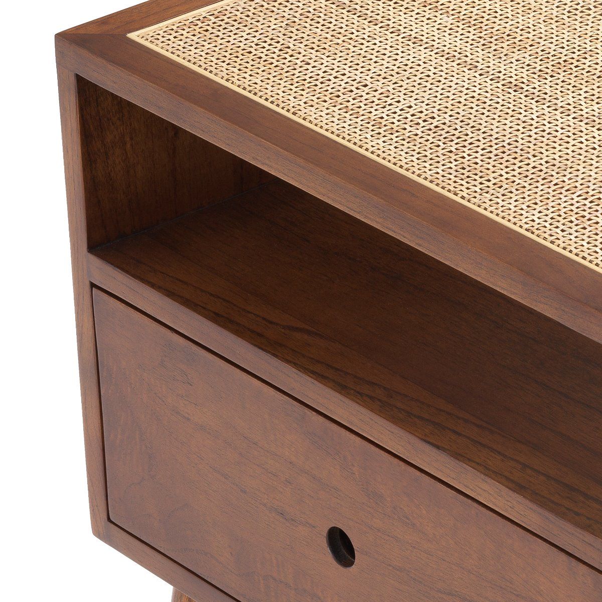 Dzięki prostemu designowi i nogom w kształcie litery V, szafka nocna Latour nada sypialni minimalistycznego charakteru.
