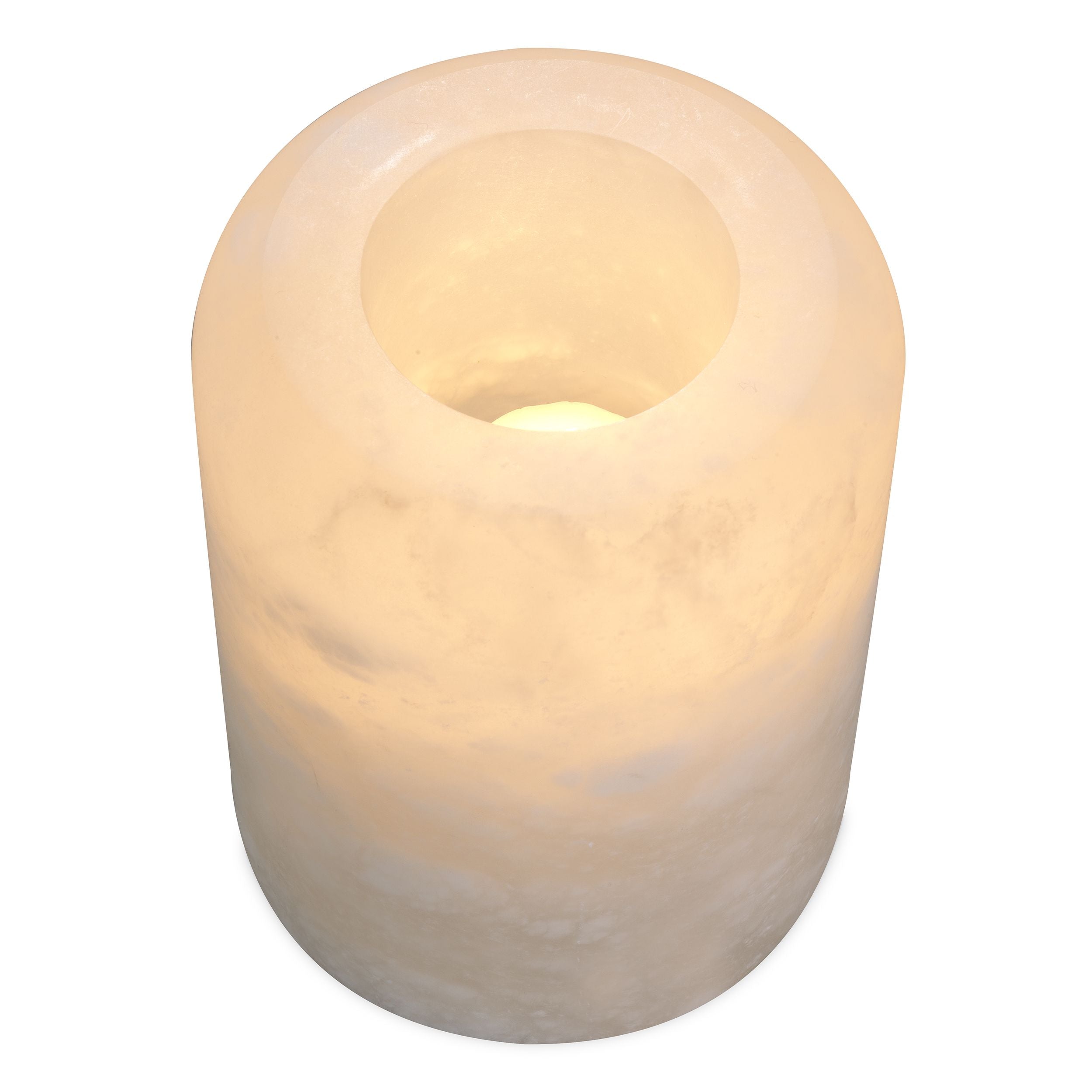 Add a cozy atmosphere to your room with the Intense L tealight holder, which will perfectly fit into your dining room or on your coffee table. Handcrafted entirely from alabaster, each piece is completely unique. The translucent alabaster allows the delicate, warm glow of the candle flame to shine through.