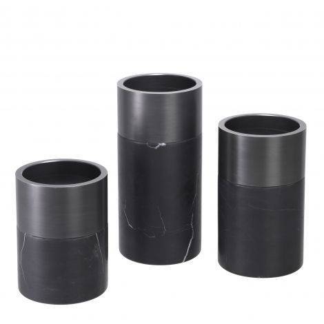 Set of 3 Eichholtz Sierra candle holders, finished in black marble