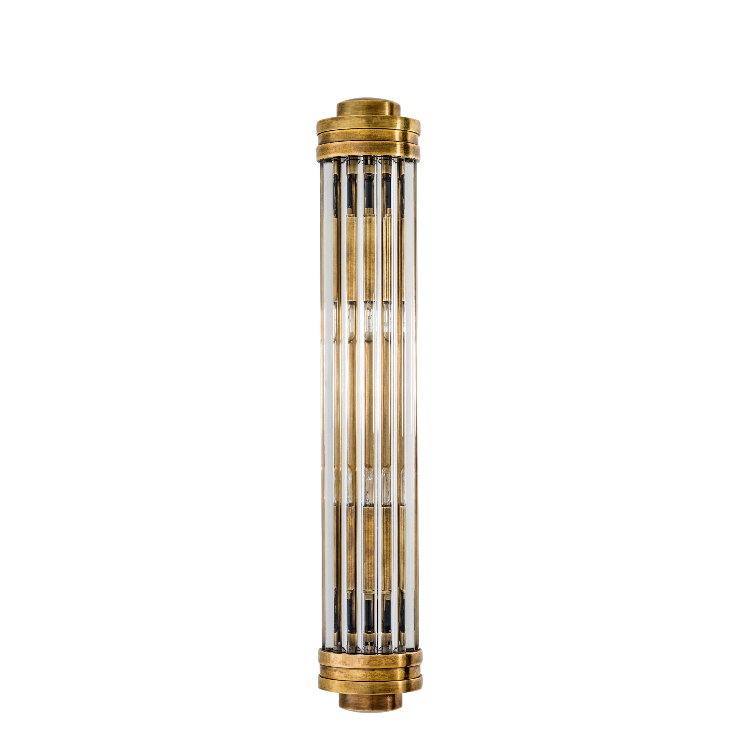 Kinkiet ścienny Gascogne S z kloszem z żebrowanego i fazowanego przezroczystego szkła skąpie wnętrze w miękkim i ciepłym blasku. Zainspirowany lampami teatralnymi w stylu Art Deco, ten kuszący kinkiet doda kosmopolitycznego stylu i blasku Twojemu domowemu wystrojowi.
