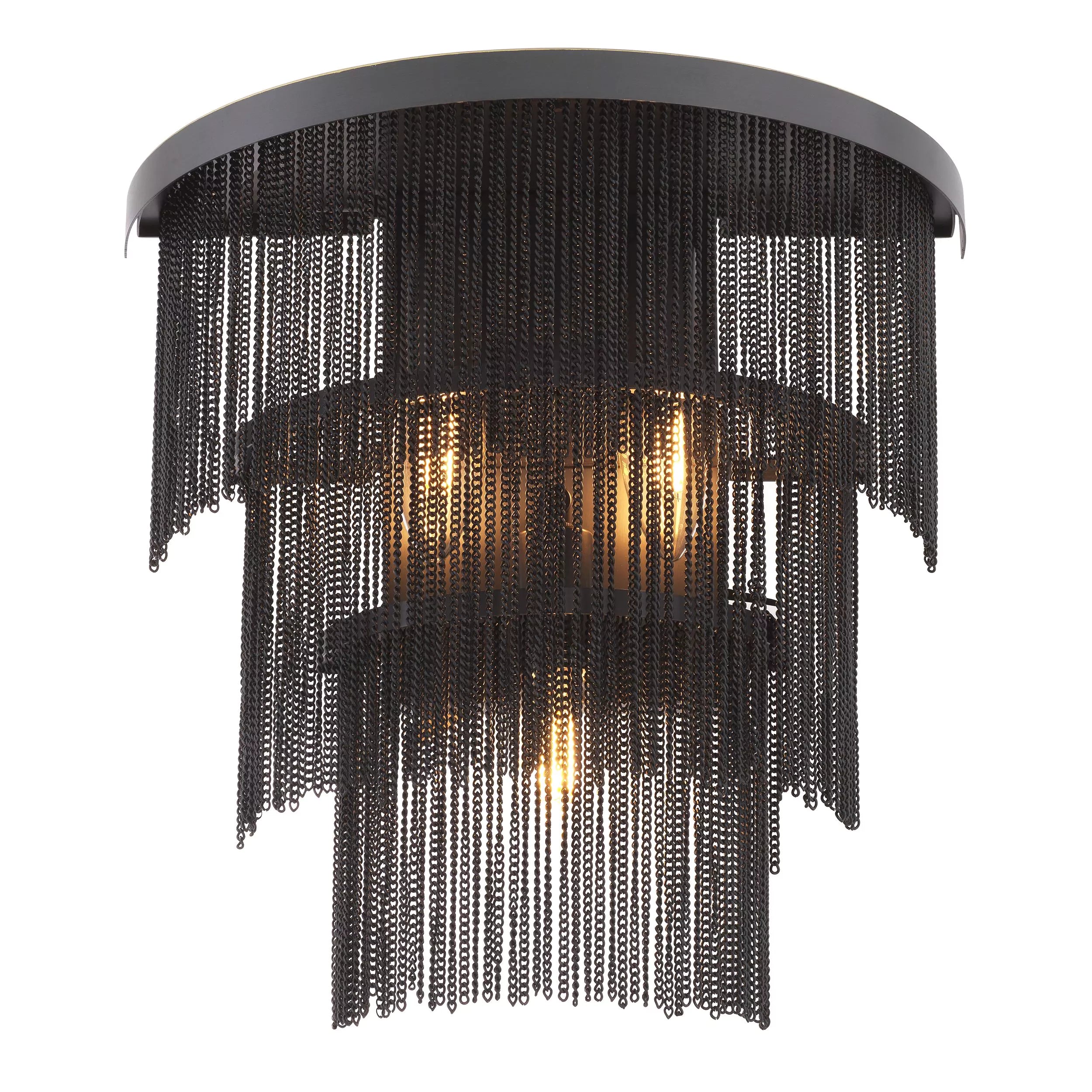 Lampa ścienna Tissot emanuje przepychem i ekstrawagancją Wielkiego Gatsby'ego. Trzy poziomy cienkich łańcuszków przypominają sukienki z frędzlami z lat 20-tych. Wykończenie w kolorze antycznego mosiądzu sprawia, że ta lampa ścienna nadaje wnętrzu szyku. Połącz z żyrandolami Tissot, aby uzyskać dodatkowy wymiar.