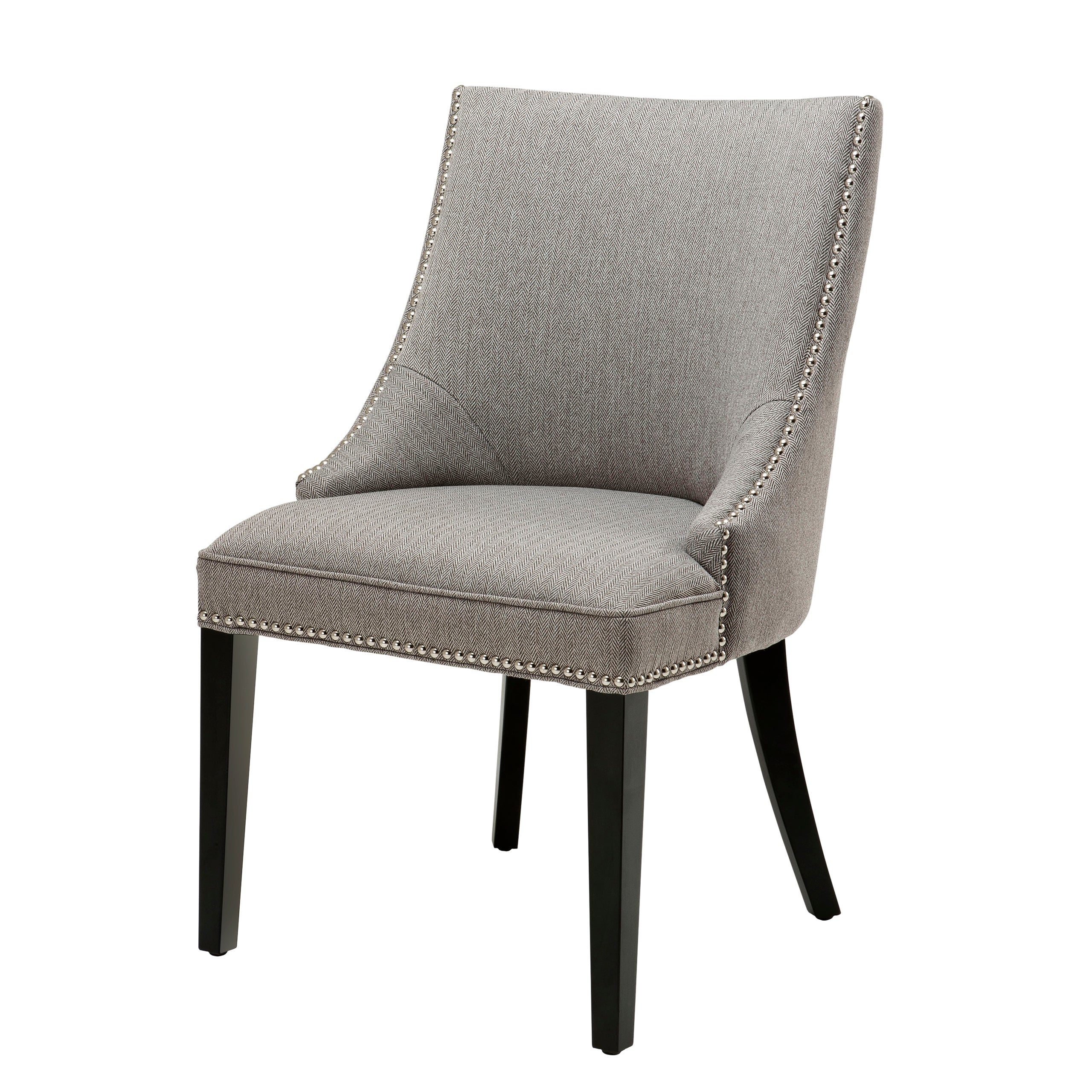 Dodaj stylowy komfort do wnętrza swojej jadalni dzięki krzesłu Bermuda Dining Chair. Krzesło to ma zamaszysty kształt i czarną mieszankę tapicerki, która jest punktualnie osadzona za pomocą ćwieków z antycznego brązu. Smukłe, czarne nogi krzesła dopełniają luksusowego wyglądu.