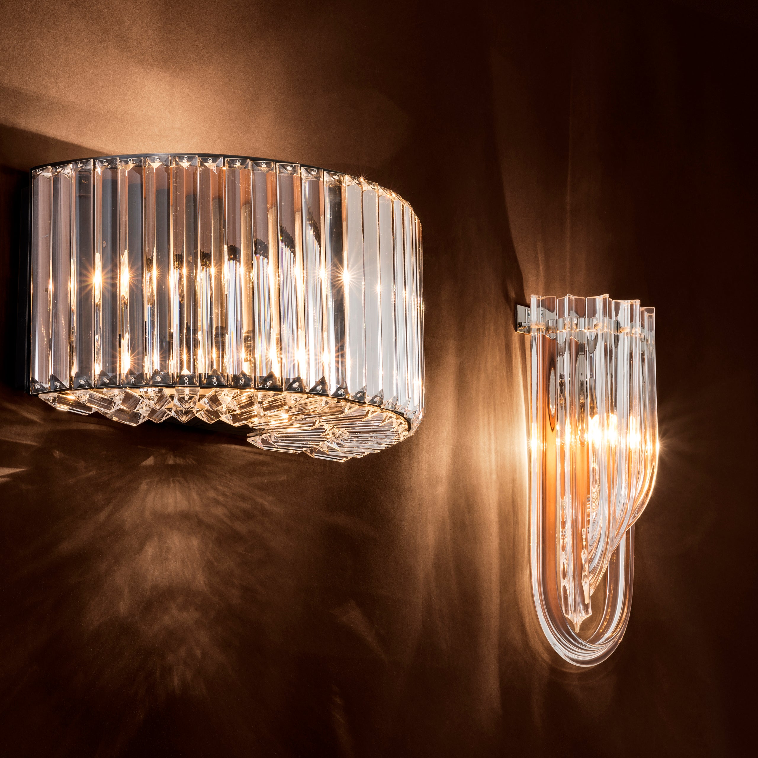 Lampa ścienna Greco o niklowym wykończeniu doda wnętrzu blasku w stylu Art Deco. Ten wysokiej klasy luksusowy kinkiet posiada serię długich rzeźbiarskich kropli z przezroczystego szkła, które pozwalają odbijać się światłu z wewnętrznych opraw oświetleniowych. Idealny do dodania stylu vintage do domu.