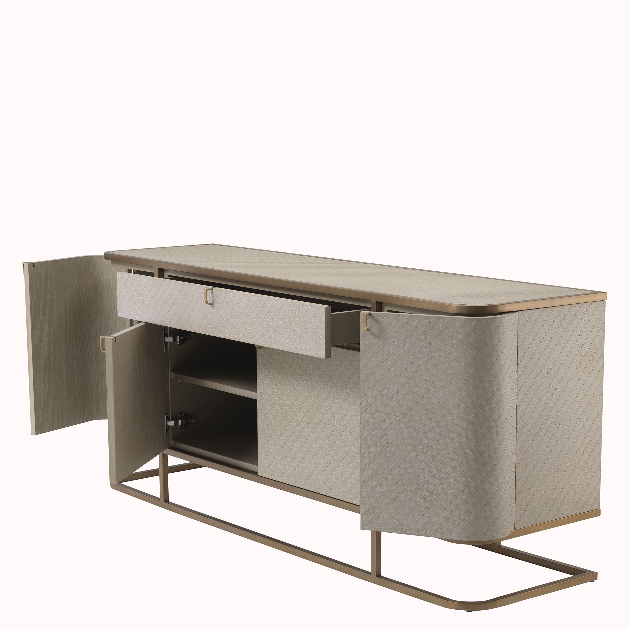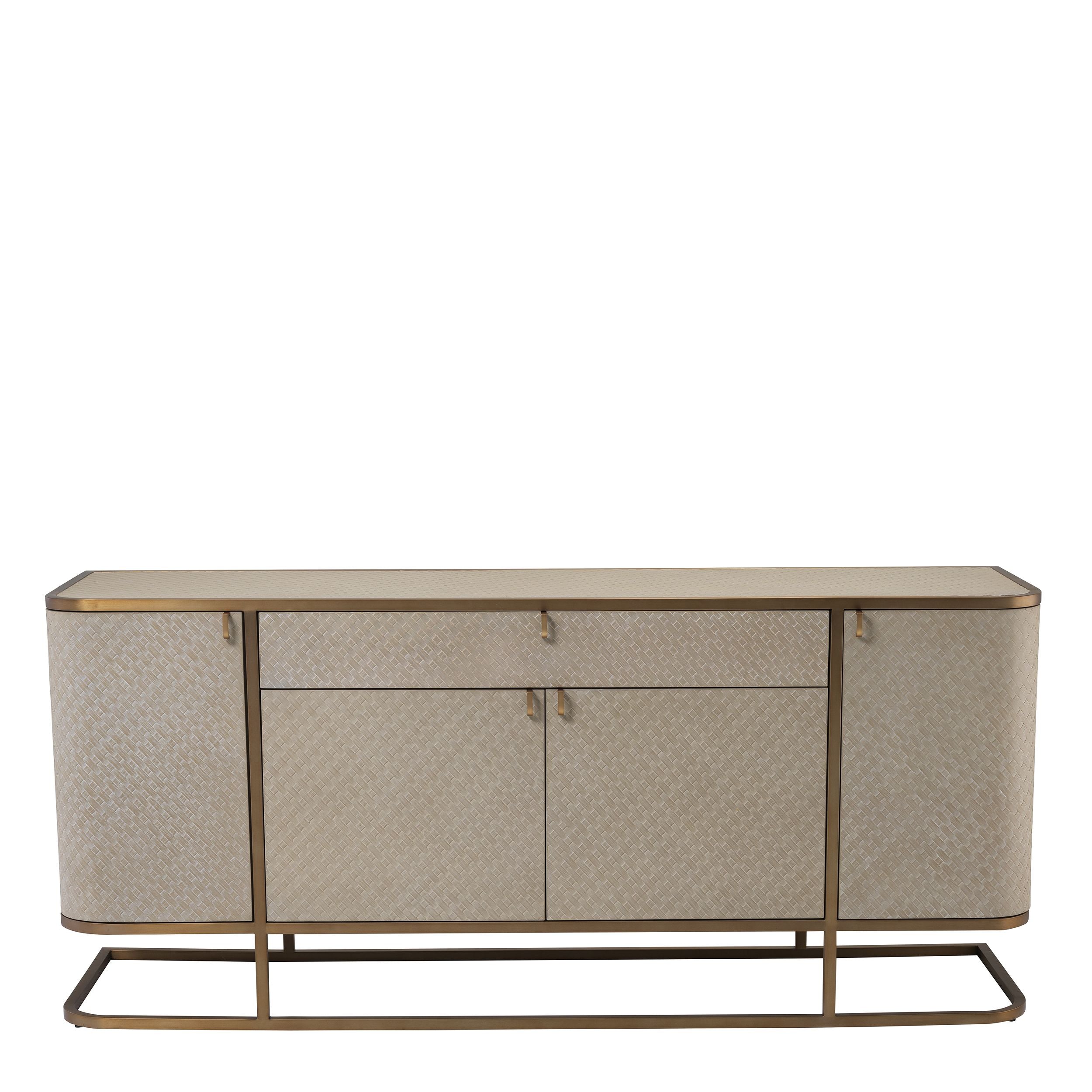 Łącząc styl Bauhaus z nowoczesnym wyglądem z połowy ubiegłego wieku, komoda Napa Valley prezentuje elegancką ramę wykończoną szczotkowanym mosiądzem.