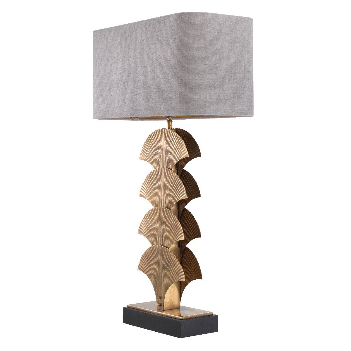 Inspirowana wzornictwem w stylu Art Deco lampa stołowa Iris wyróżnia się kuszącą podstawą w wykończeniu z mosiądzu w stylu vintage.