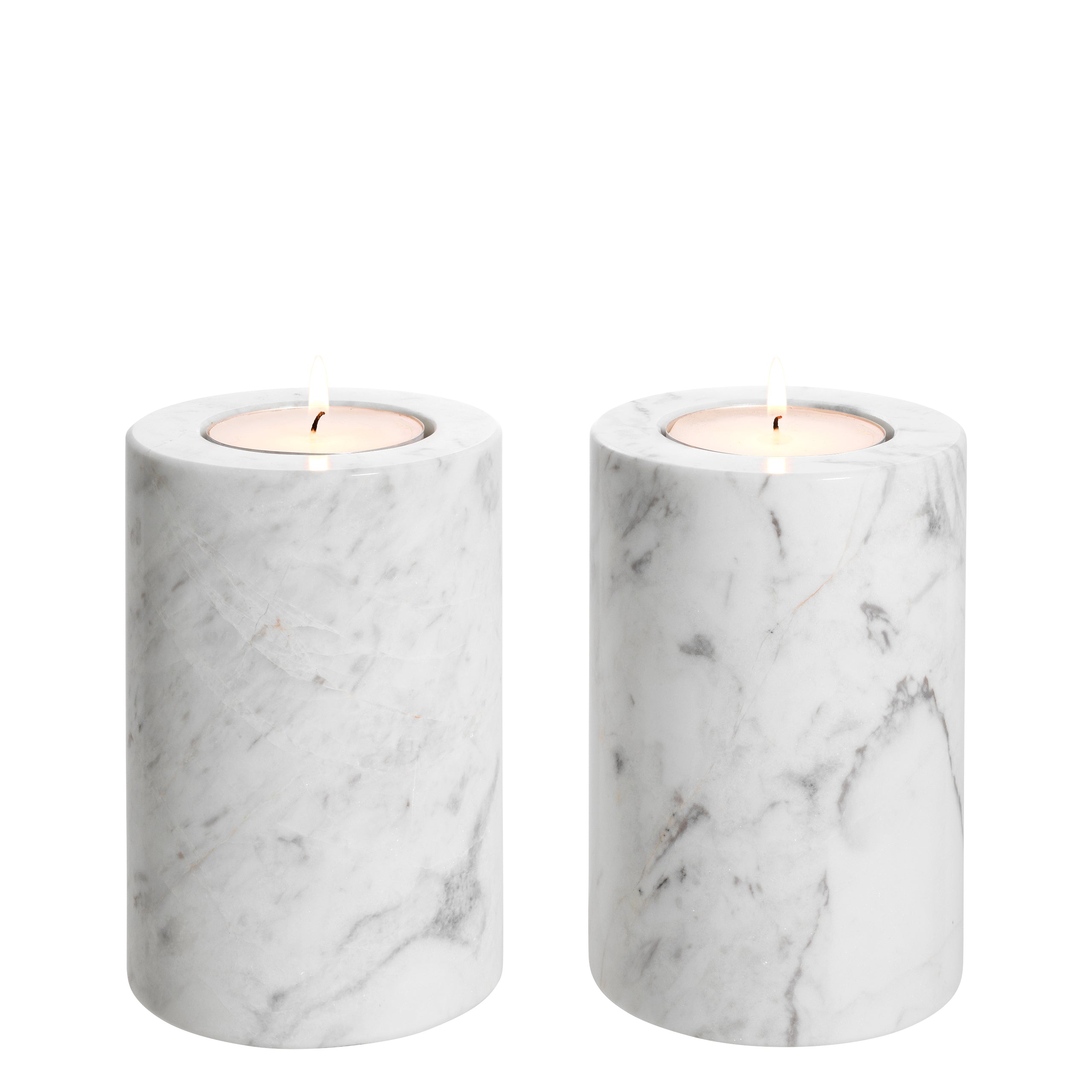 Świecznik na tealighty Eichholtz Tobor, S, biały marmur, zestaw 2 szt.